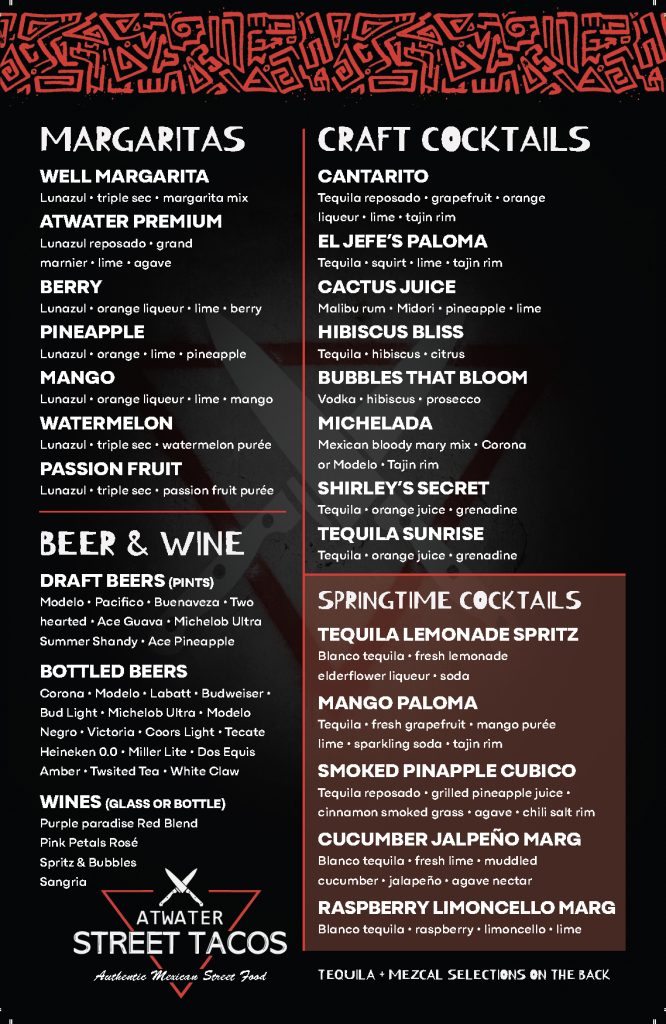Monroe Menu atwater street tacos
